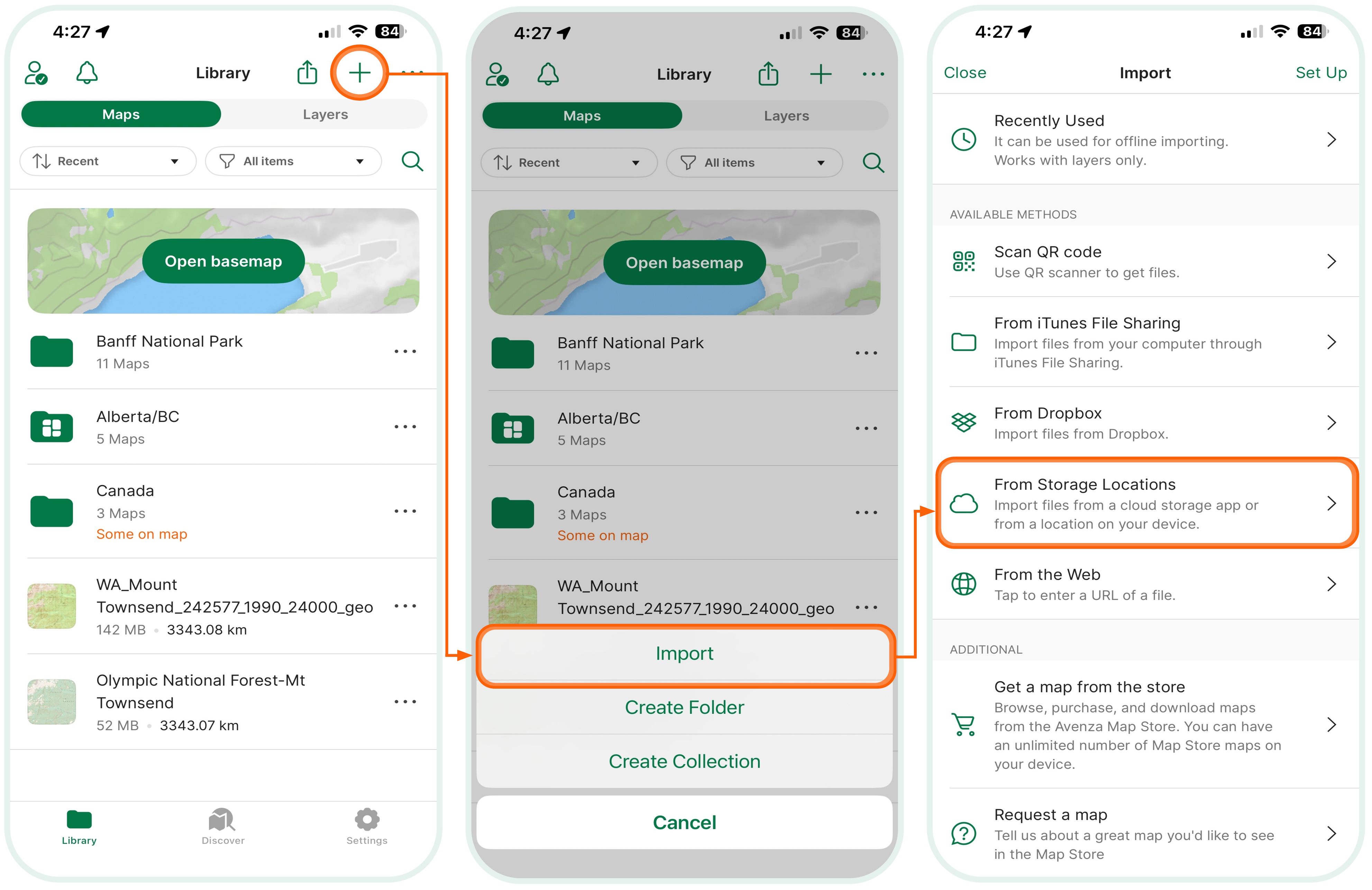 - You can import maps from a cloud storage system like Google Drive, your device storage, Dropbox, or from the web. Make sure you know where you are saving your map so you can easily access it from the app